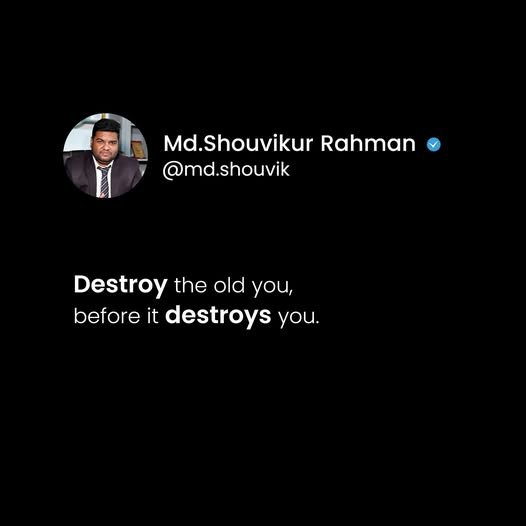 রনো আপনাকে ভেঙে ফেলুন, না হলে সেটা আপনাকেই ভেঙে ফেলবে। অনেক সময় আমরা পুরনো অভ্যাস, ভয়, আলস্য বা আত্মবিশ্বাসের ঘাটতিকে আঁকড়ে ধরি।ভাবি—সব ঠিক আছে, সময় হলে বদলাব। কিন্তু সময় আপনাকে সুযোগ দেয় না, সময় শুধু এগিয়ে চলে।আর আপনি যদি নিজেকে…